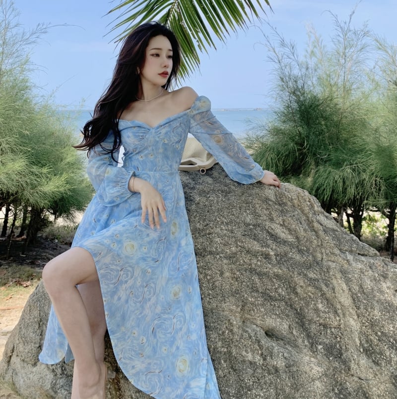 Encanto da Praia — Vestido Longa Estampada de Verão